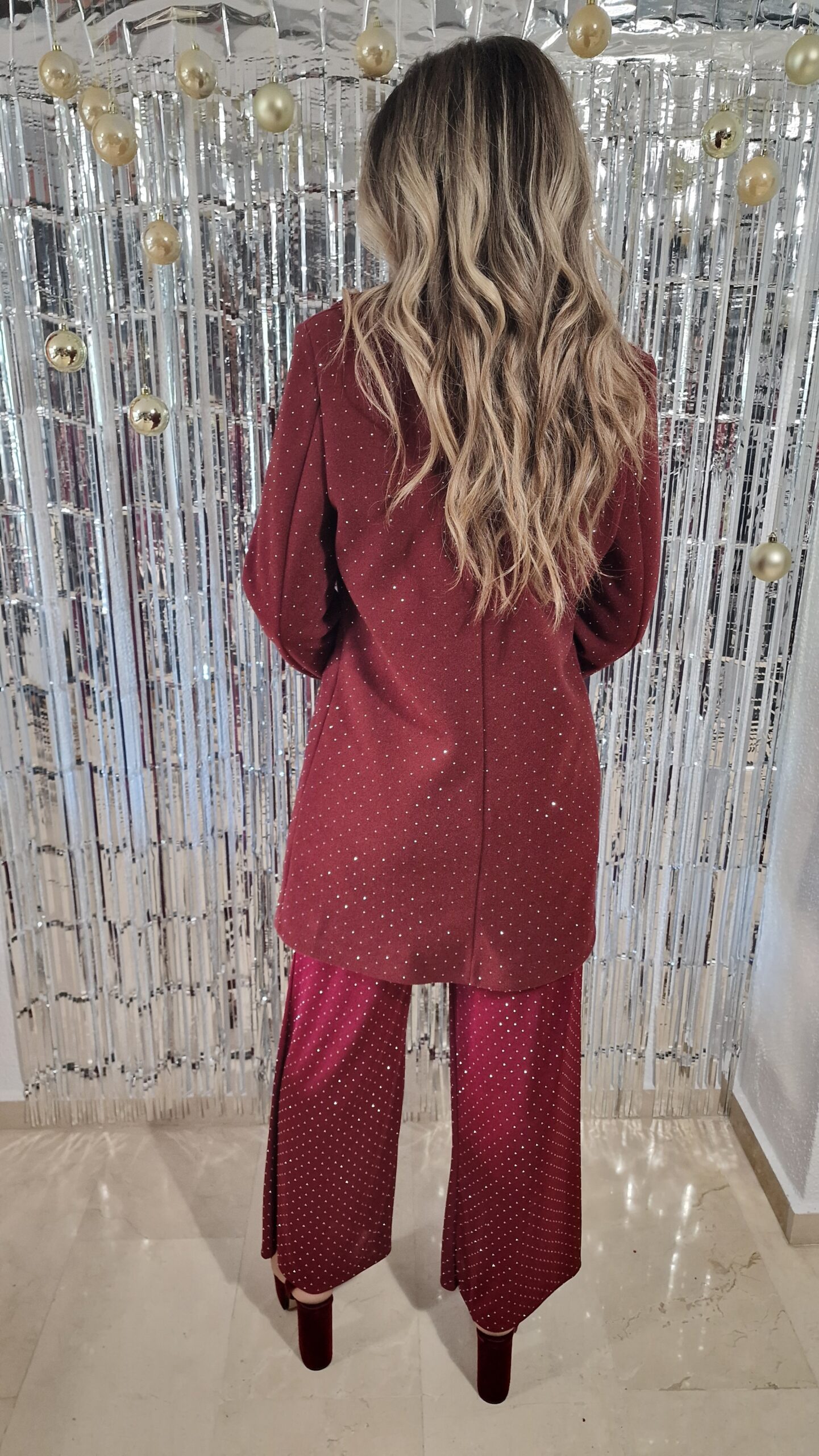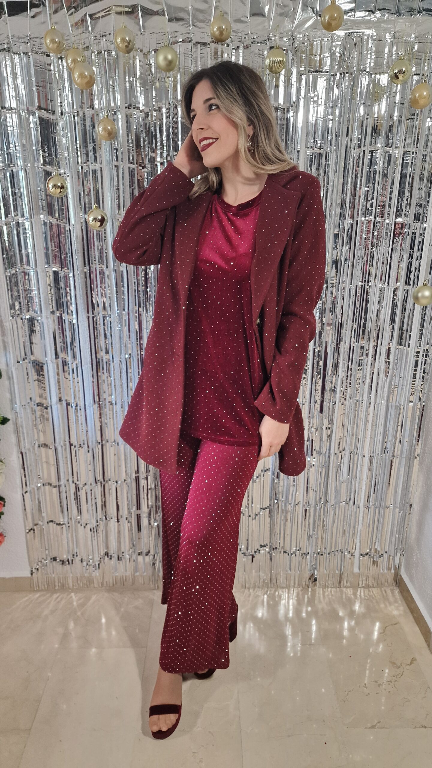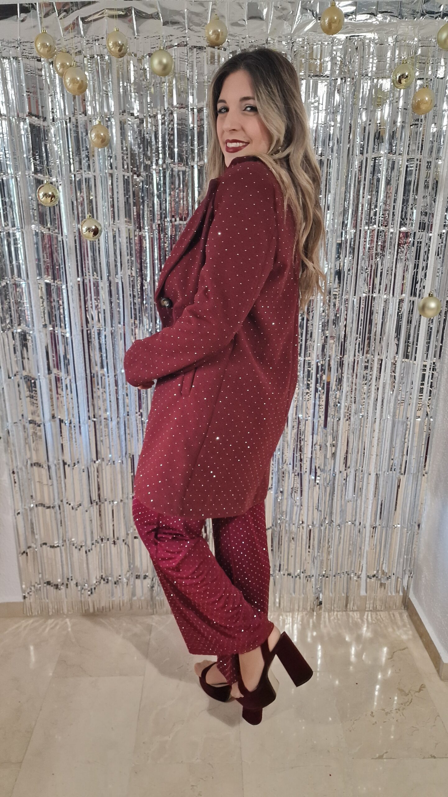 Abrigo paño brillos burdeos