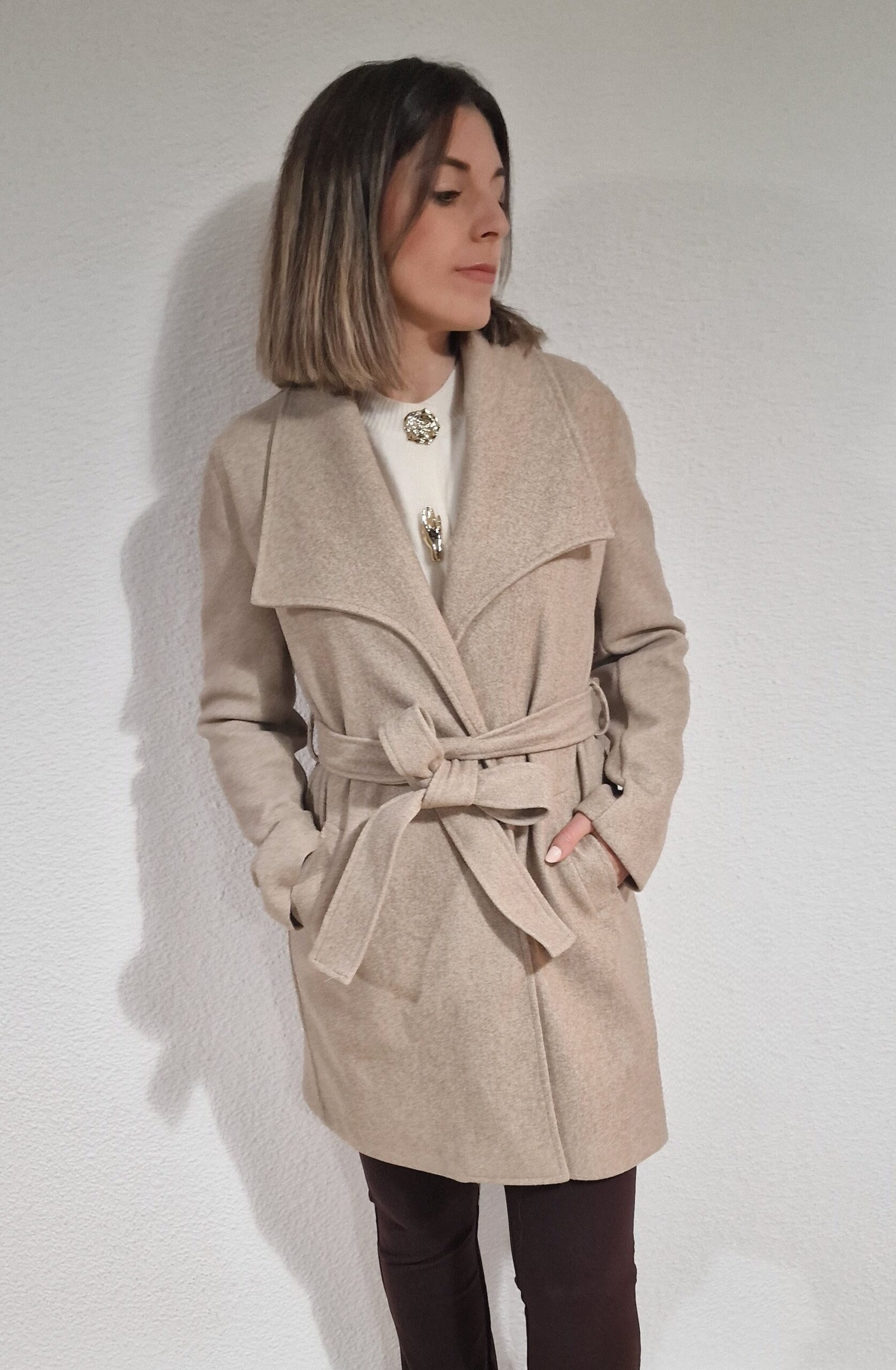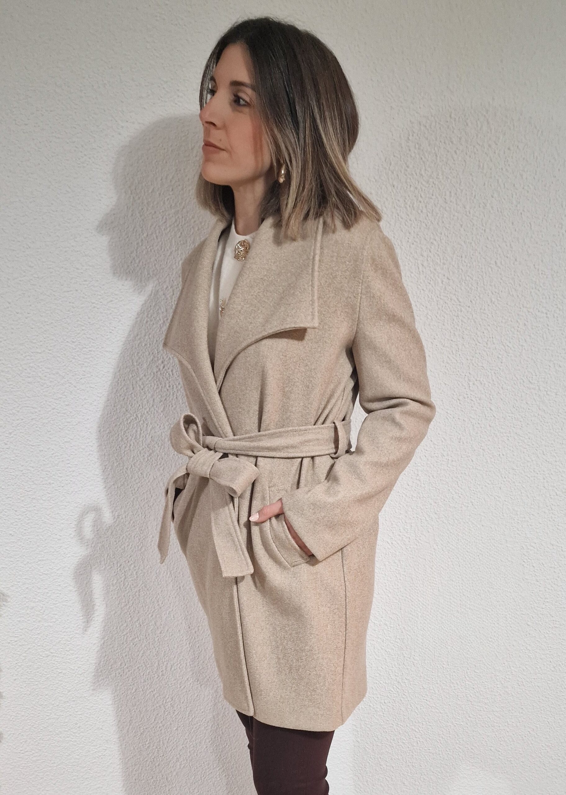 Abrigo paño tres cuartos atado
