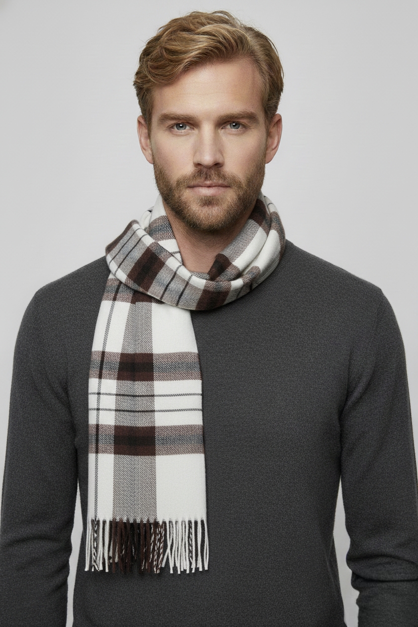 Bufanda cuadros marrón y blanca