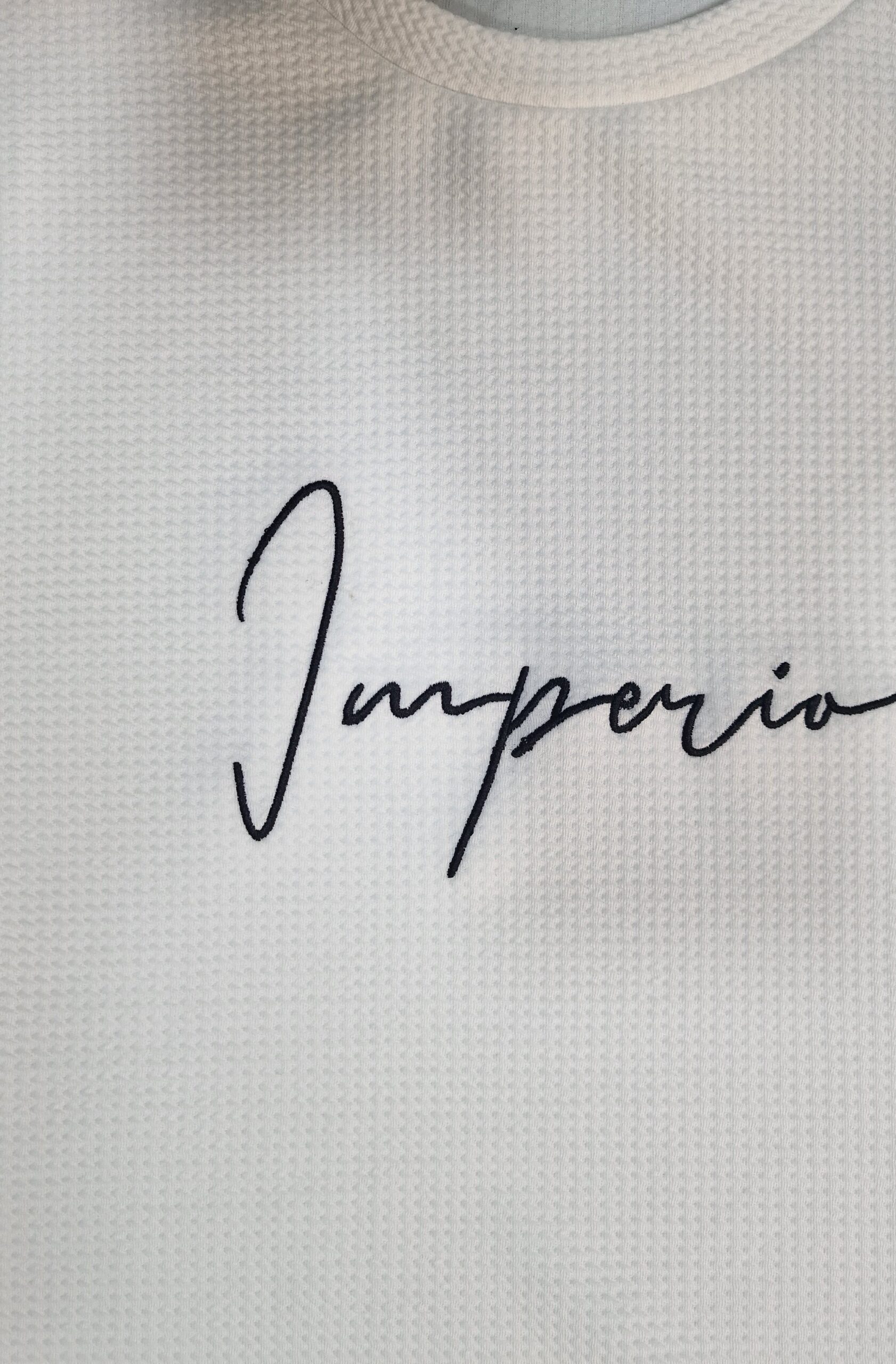 Camiseta con cuello a la caja y bajo redondeado. Tejido con estructura. Este producto talla muy pequeño. Se aconseja coger una talla más de la que se suele usar para un ajuste entallado y dos tallas más para un ajuste normal.
