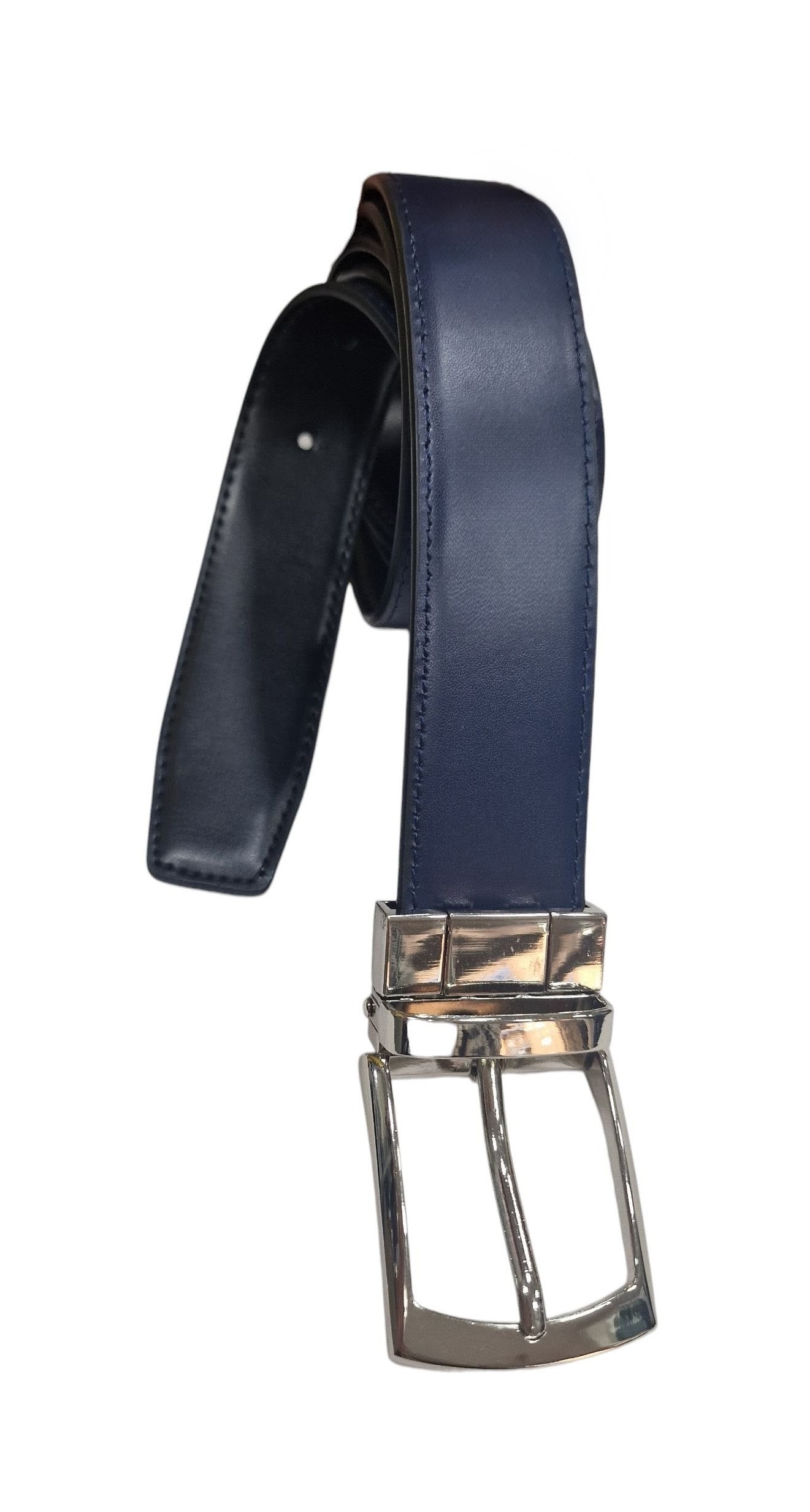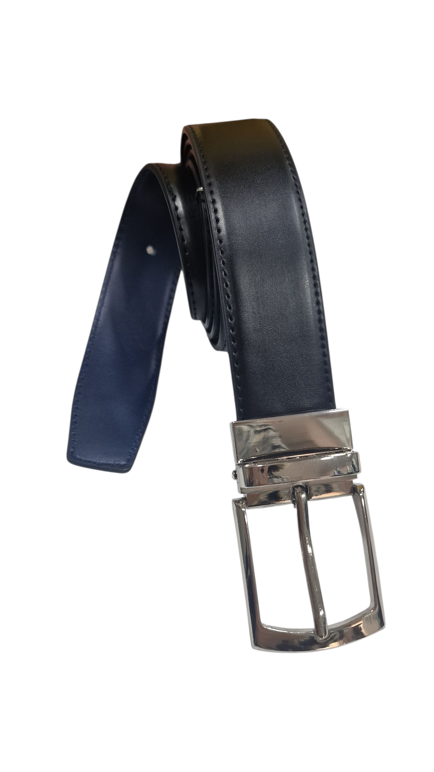 Cinturón de polipiel reversible con hebilla clásica y agujeros. La hebilla lleva un sistema para girarse y así cambiar el color del cinturón. Se puede extraer el cabezal del cinturón y acortarlo para que se ajuste mejor en caso necesario.