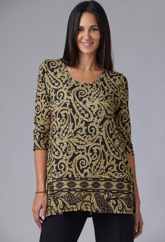 Conjunto blusa y pantalón estampado cachemir dorado y negro