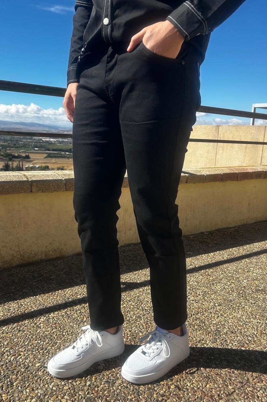 Vaquero negro regular fit elastico