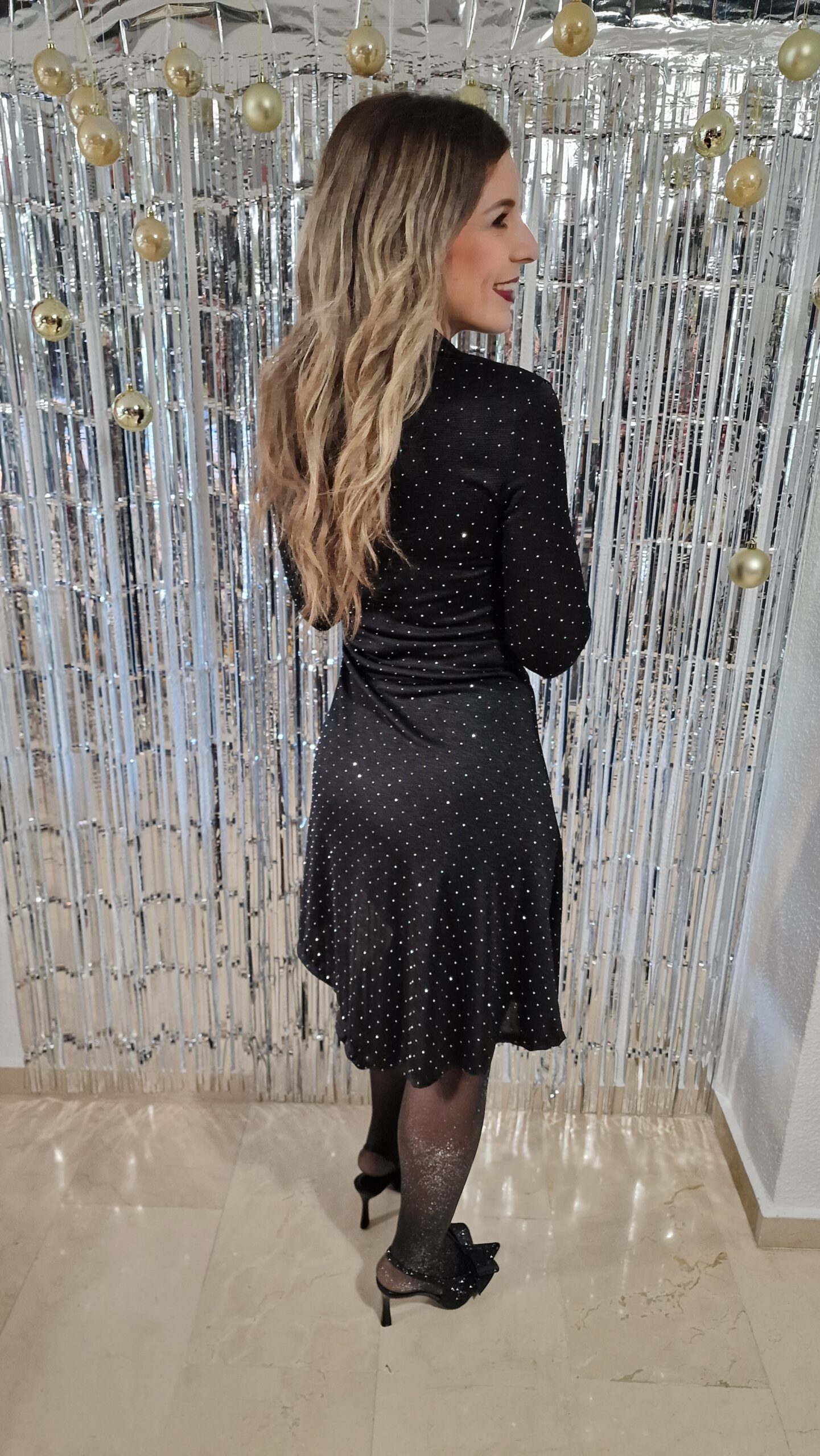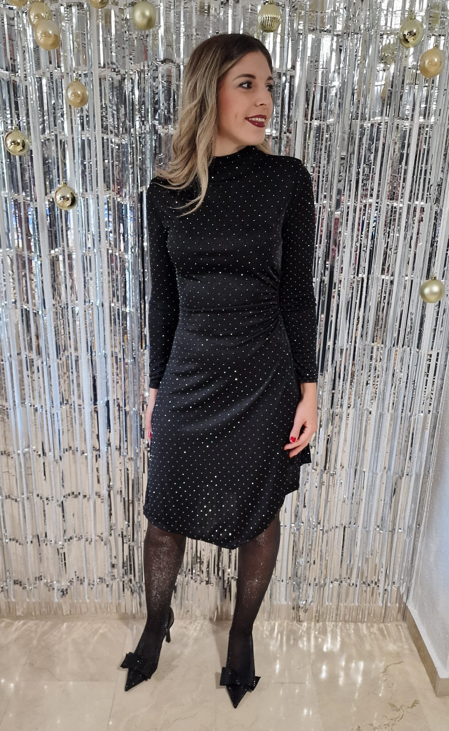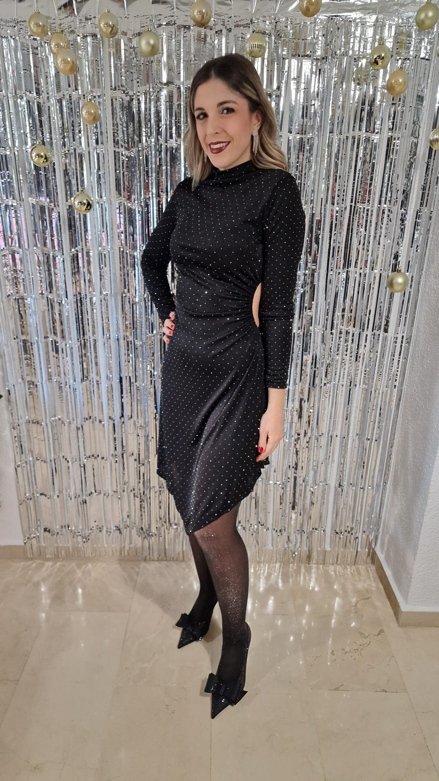 Vestido brillos asimétrico con abertura negro