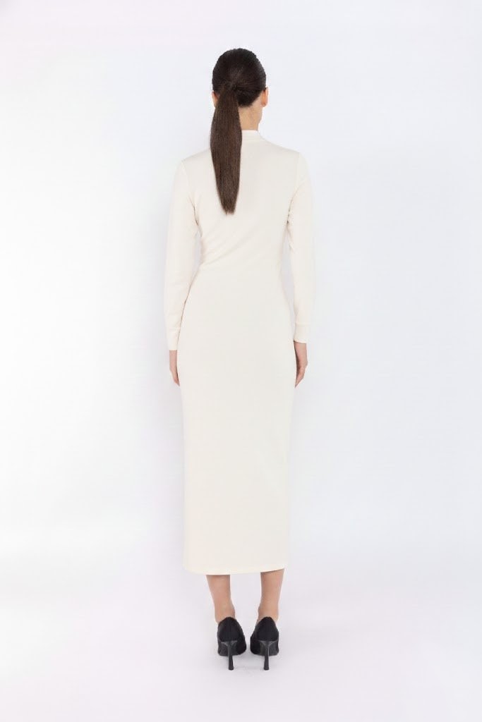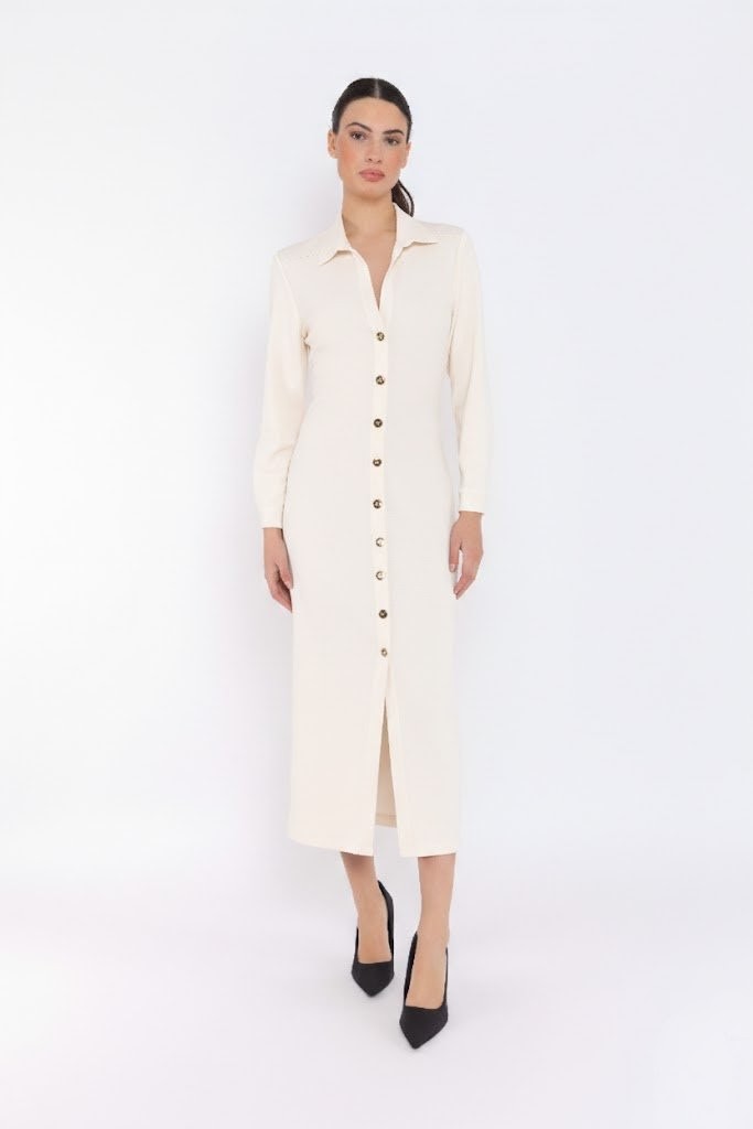 Vestido camisero botones dorados crudo