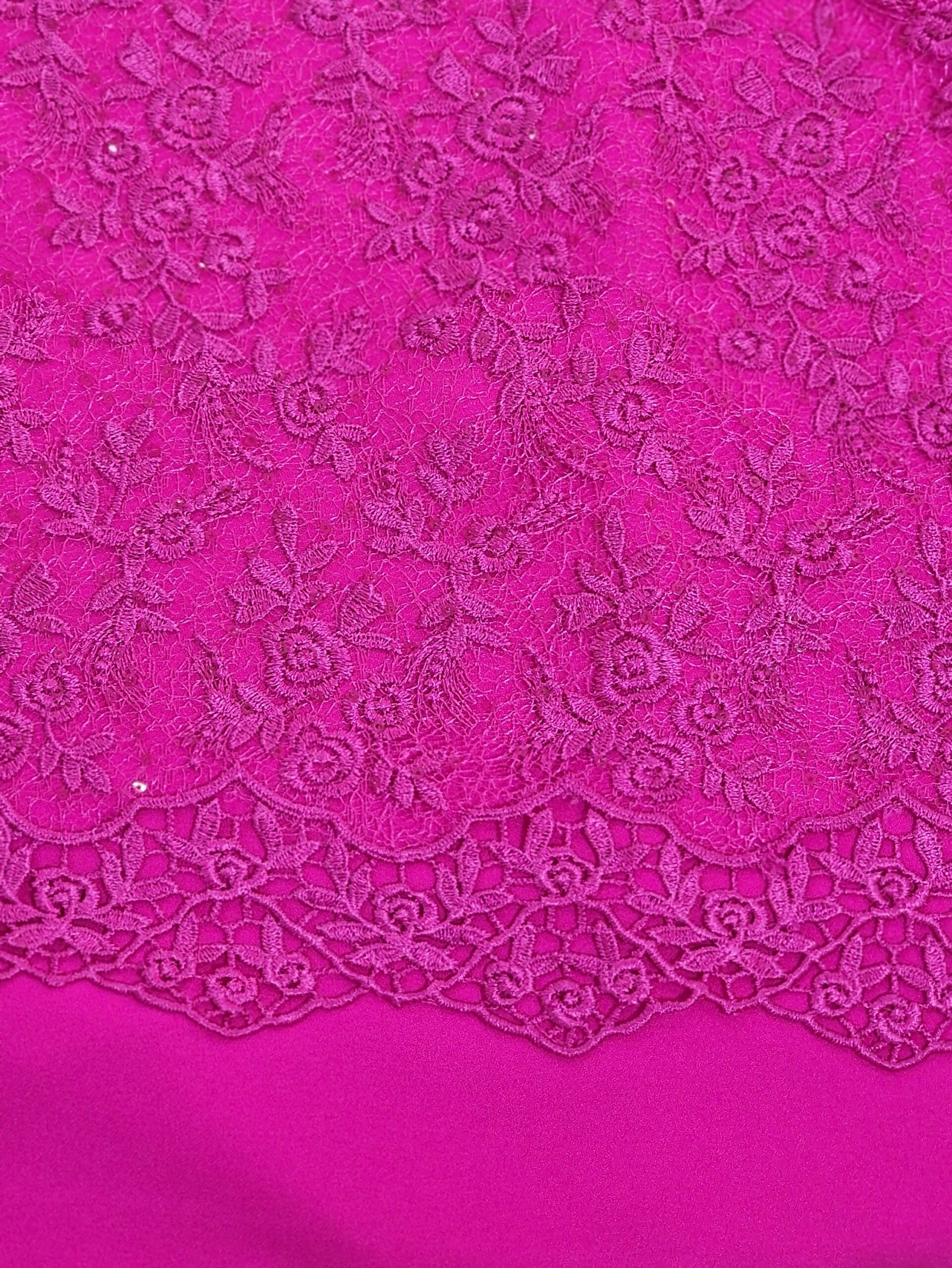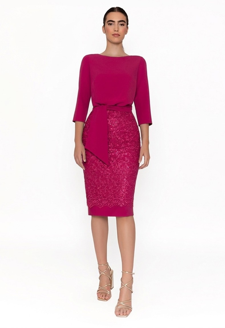 Vestido combinado encaje floral fucsia