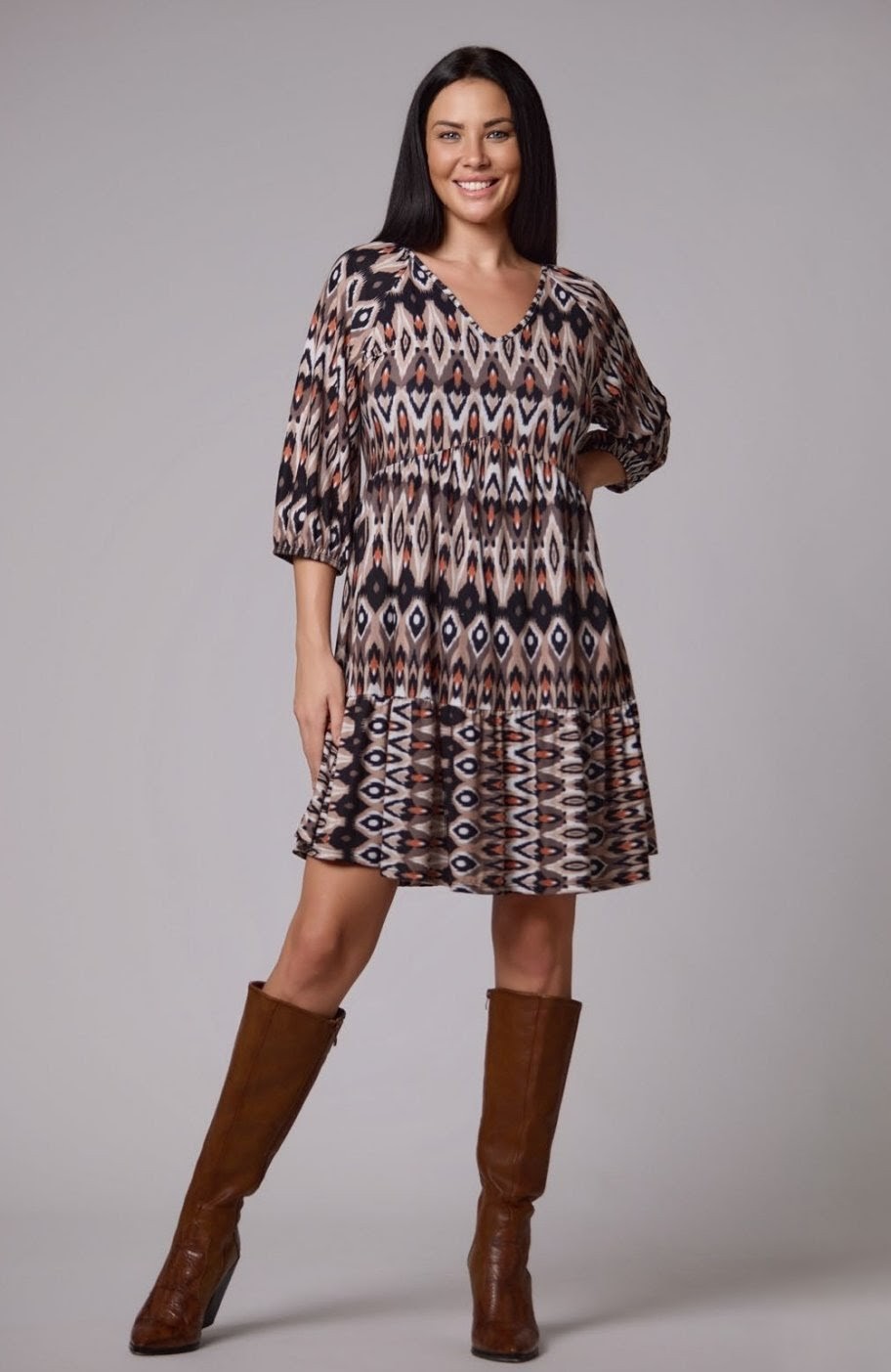 Vestido corto estampado étnico volante bajo