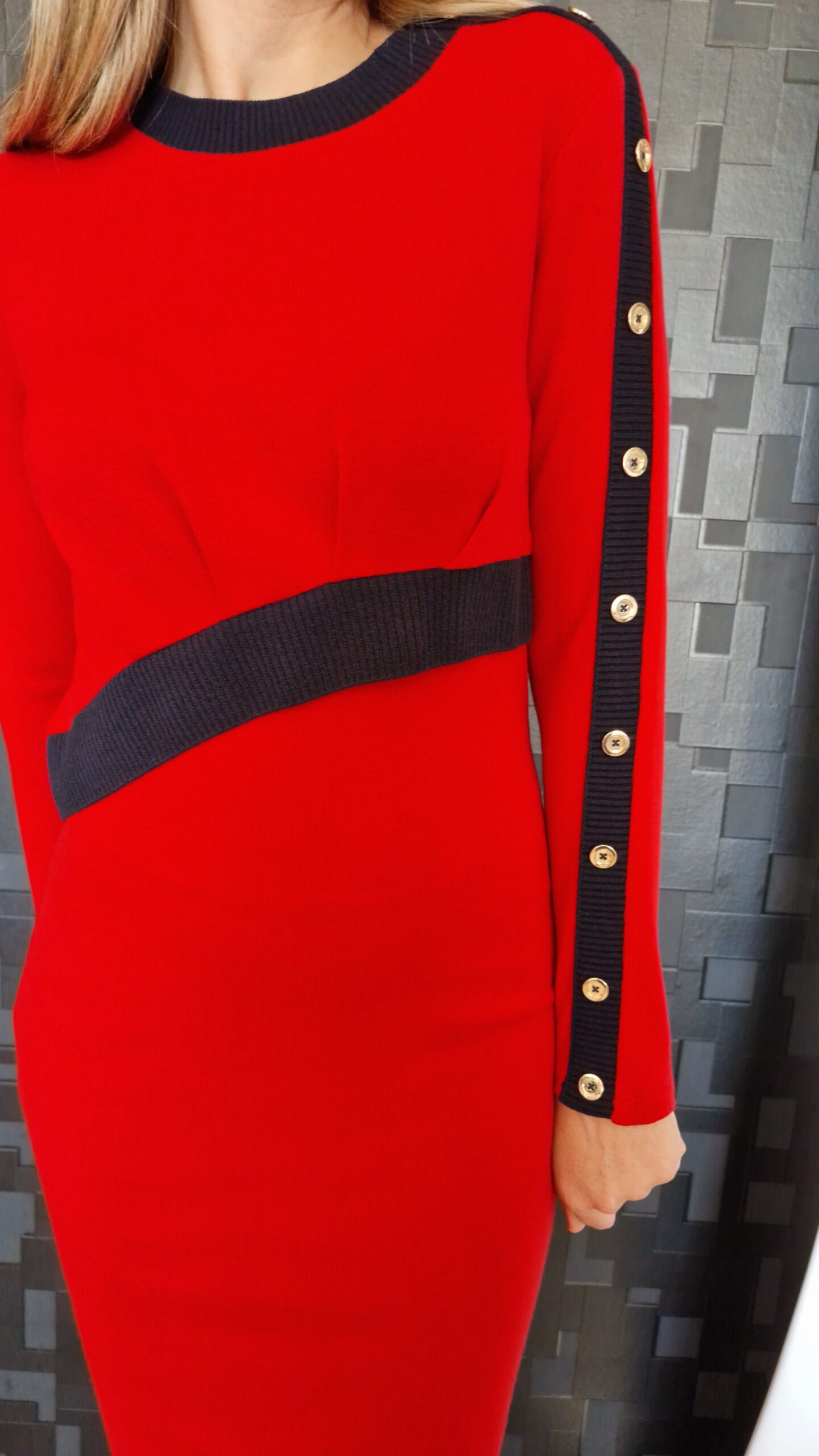 Vestido detalle línea oblícua y botones mangas combinado rojo y marino