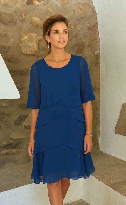 Vestido gasa corto volantes cruzados cuello redondo