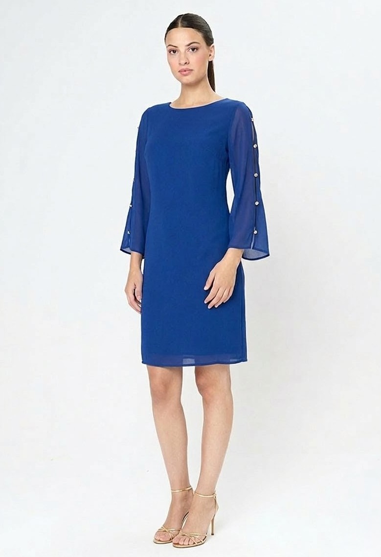 Vestido gasa detalle botones manga azul marino