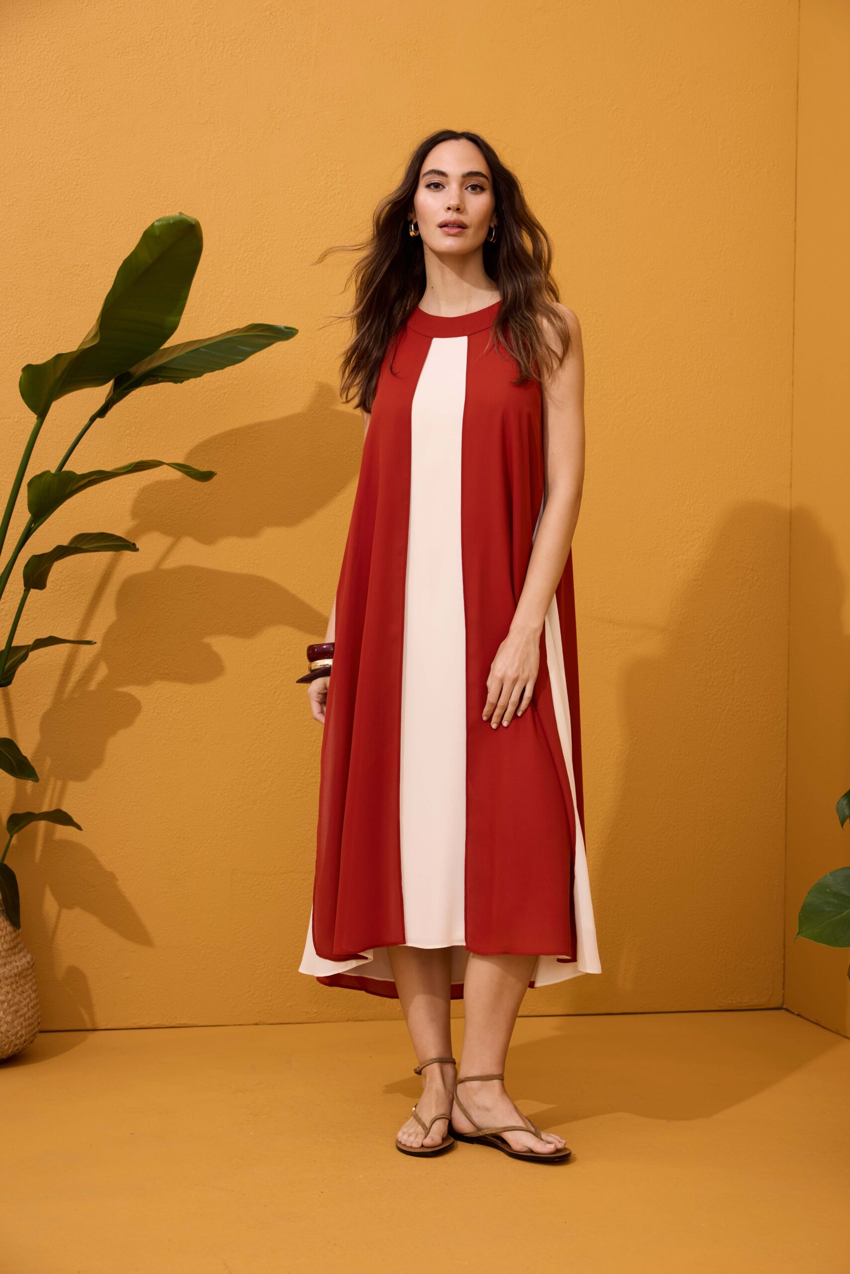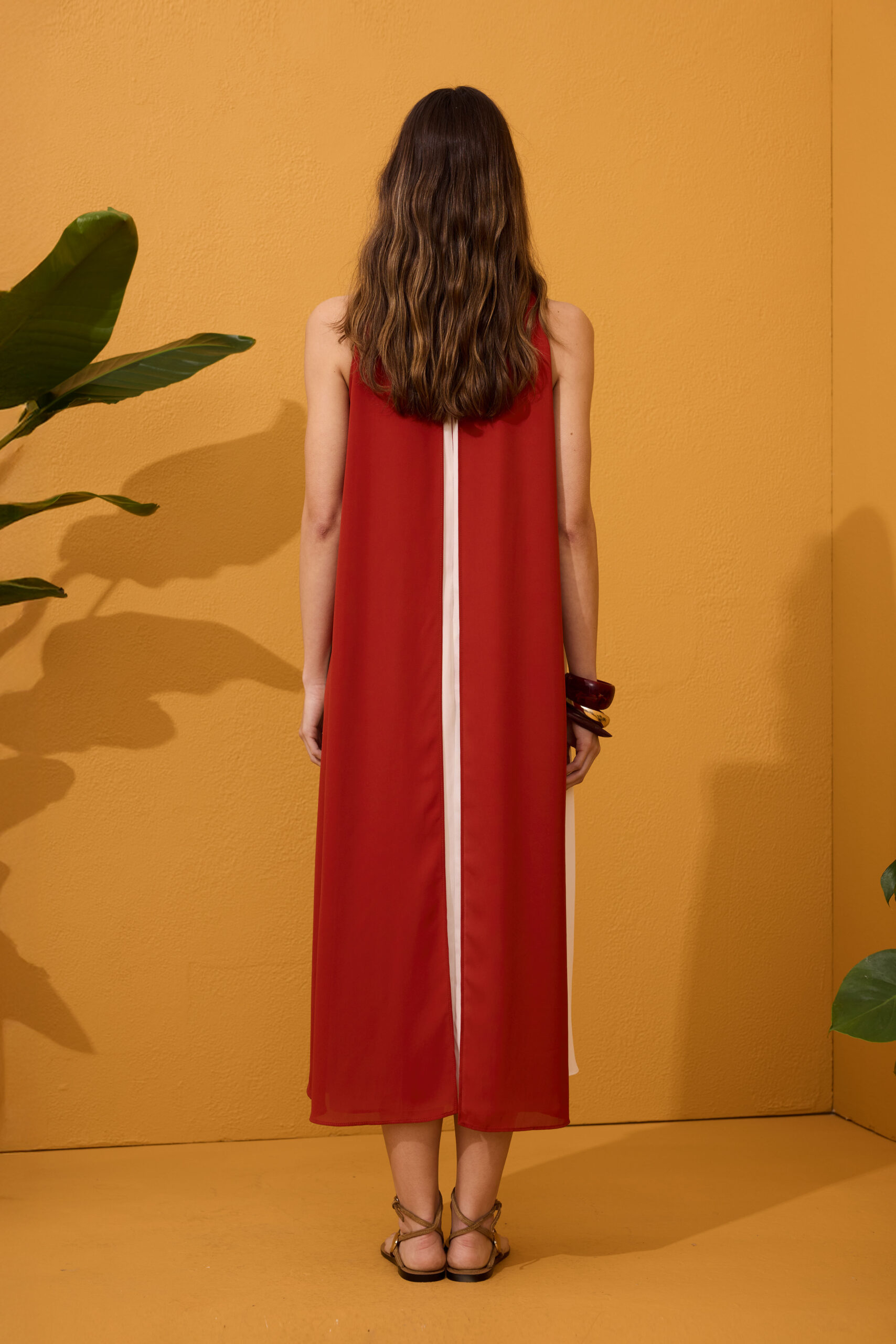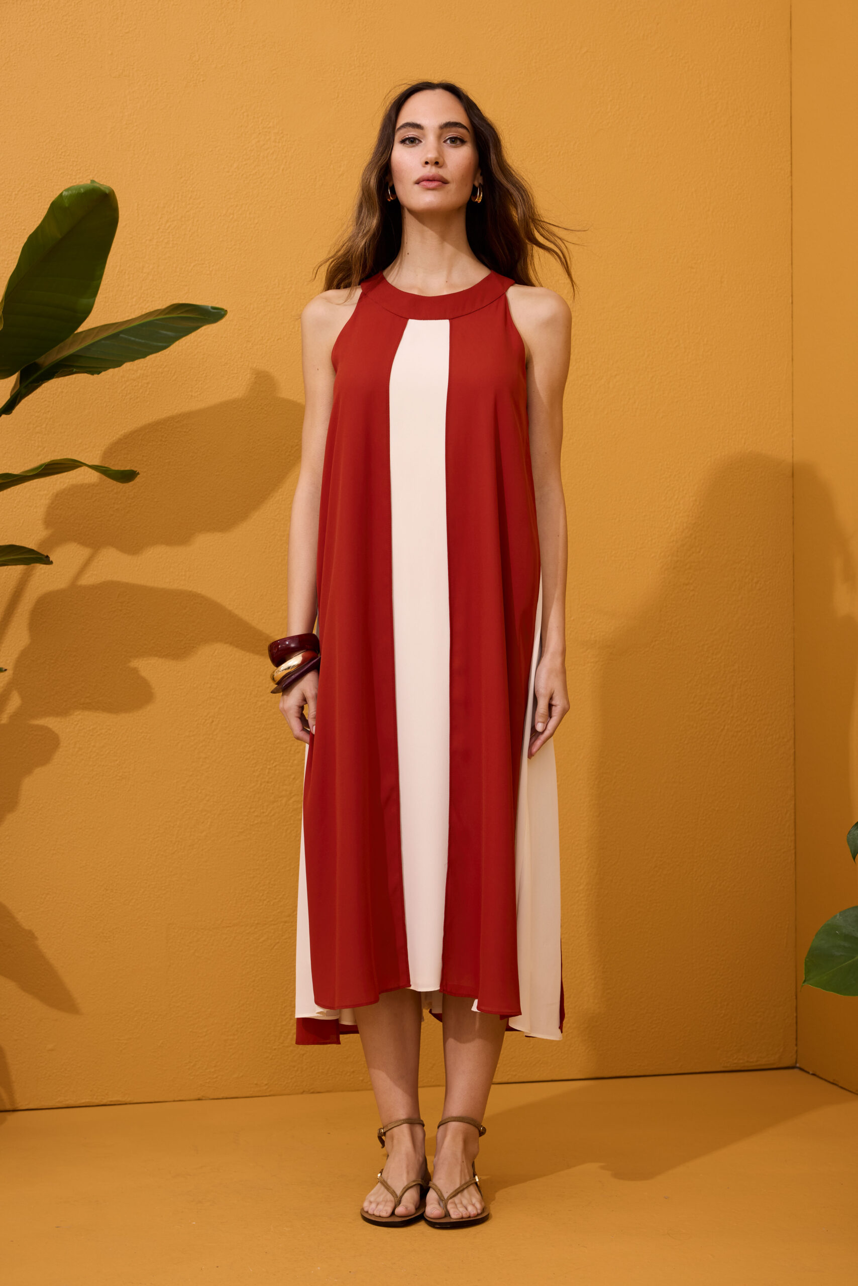 Vestido halter franjas caldera y beige