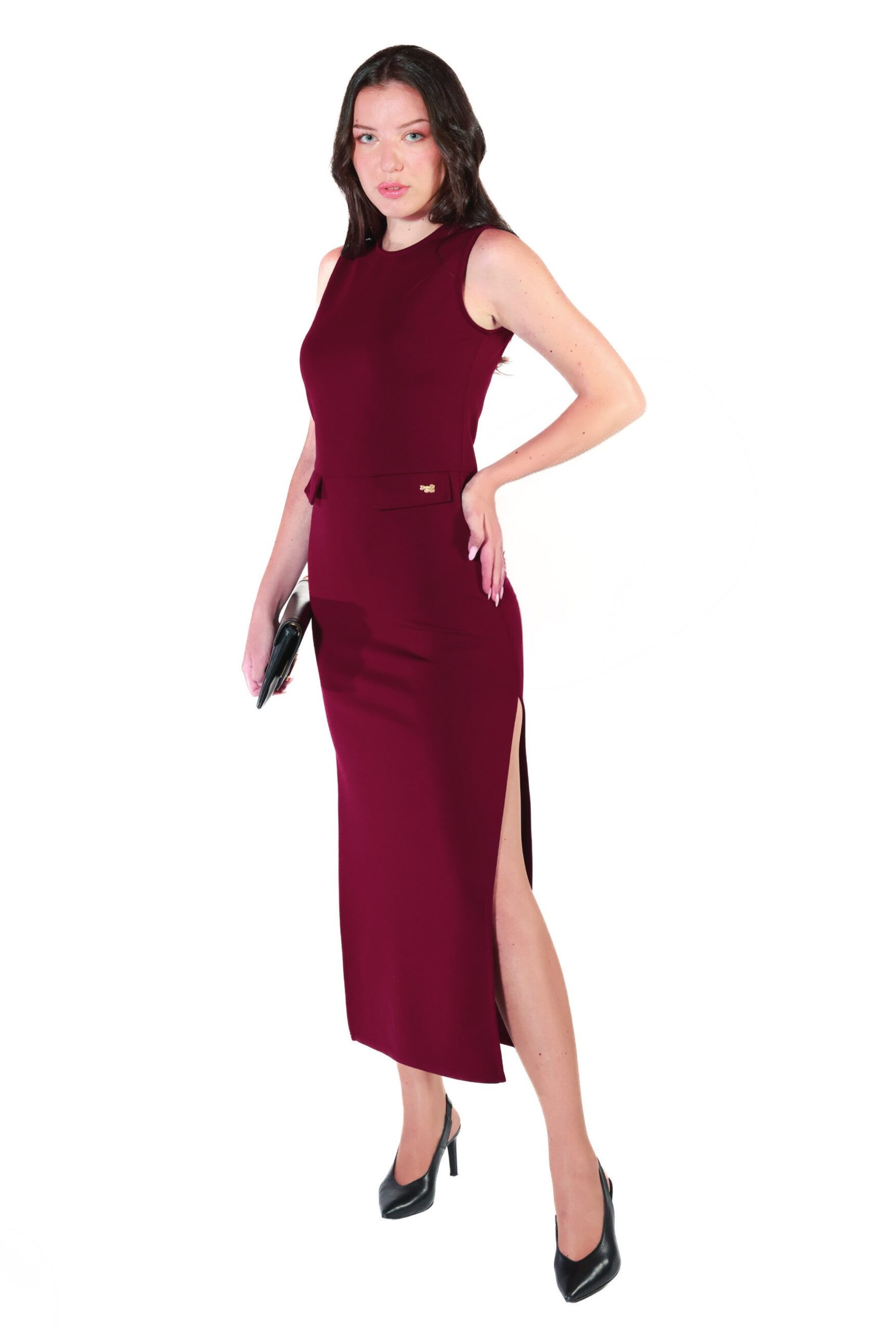 Vestido largo recto detalle solapas bolsillos