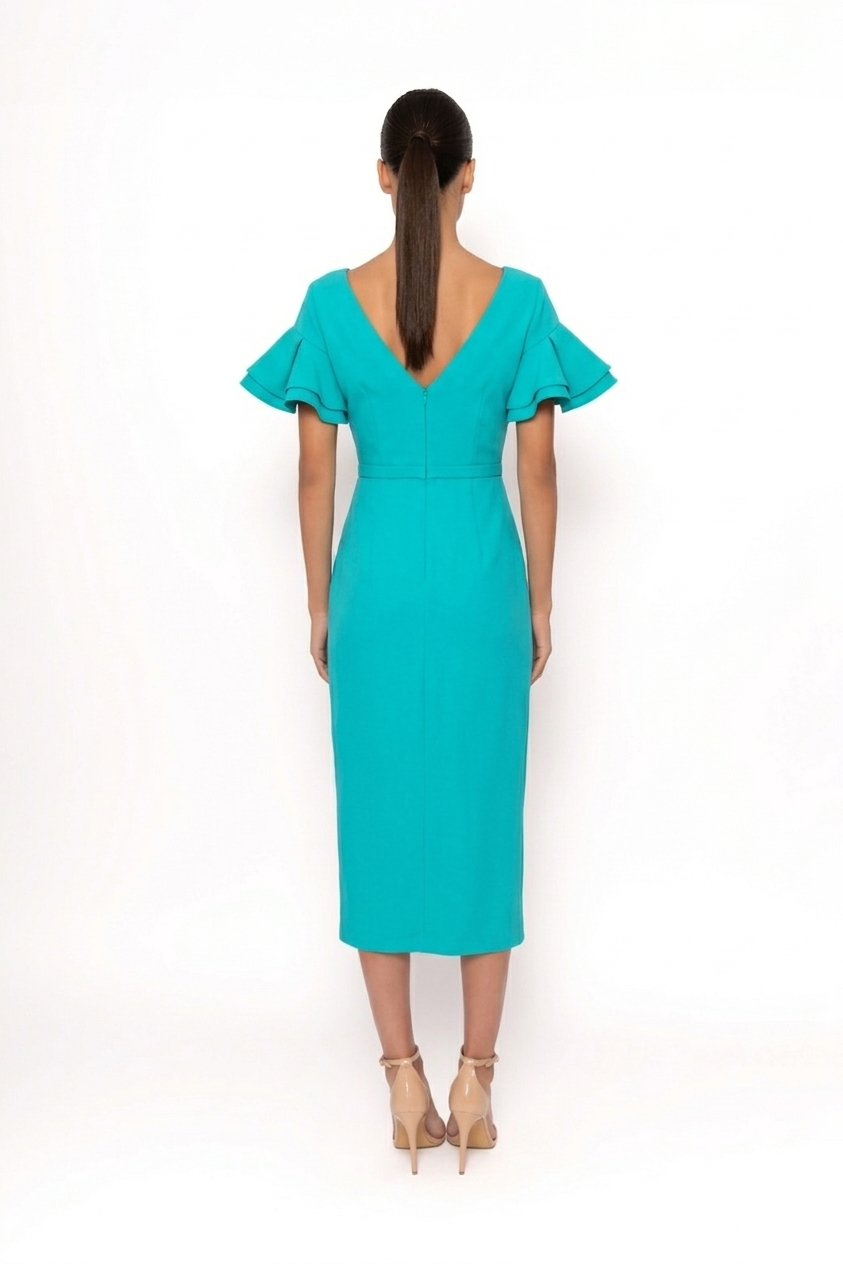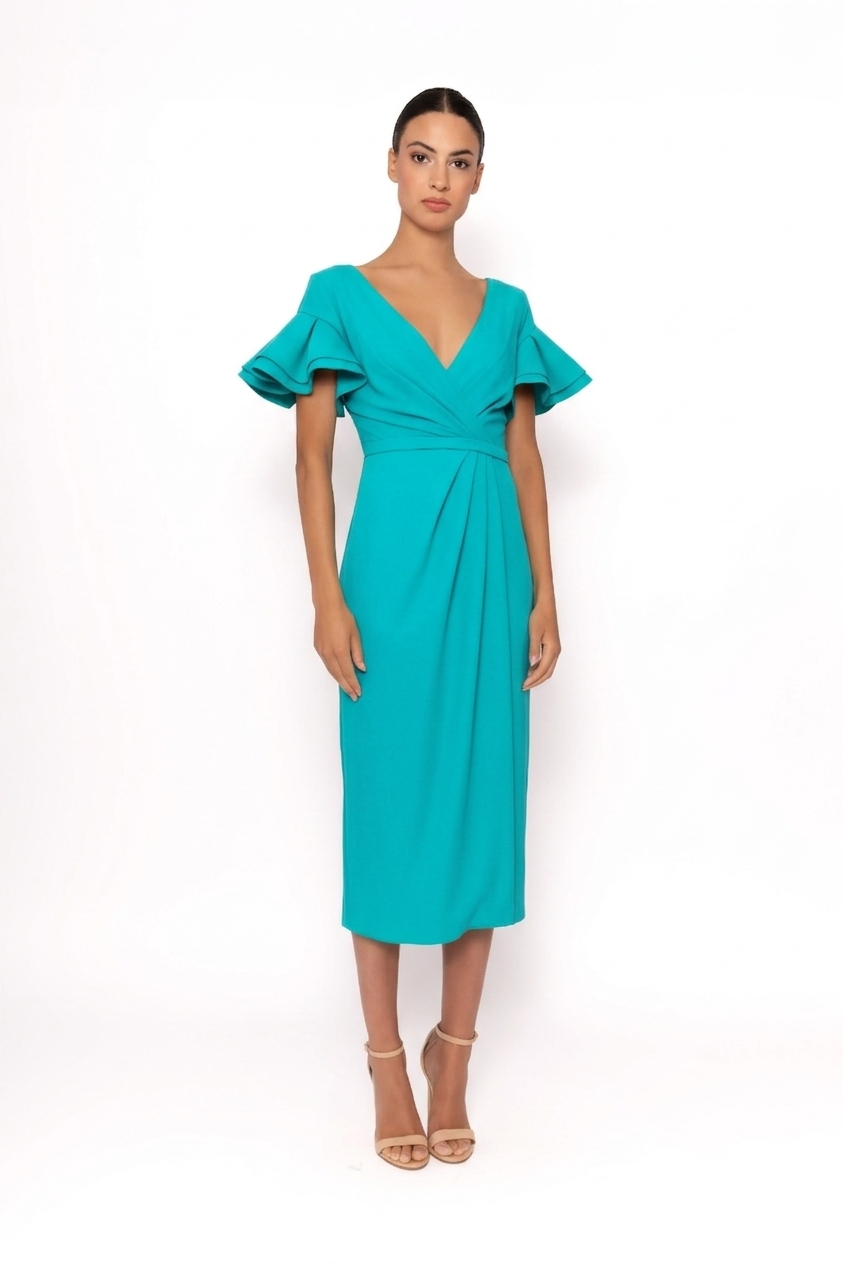 Vestido mangas volantes y escote cruzado verde agua